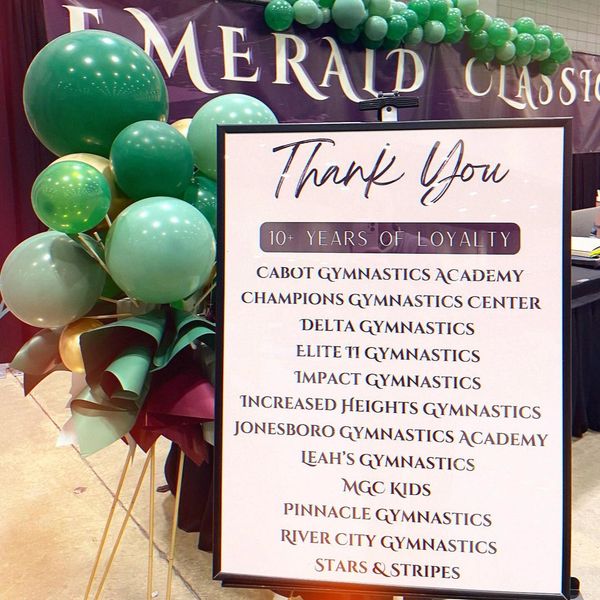 In early 2001, approximately 100 gymnasts gathered in Jacksonville for the first Sweetheart Invitational. It took just a few years to outgrow the in-house format... and morph into The Emerald Classic! Over two decades later, we have grown into one of the largest meets in Arkansas hosting over 11,000 gymnasts from eight different states.